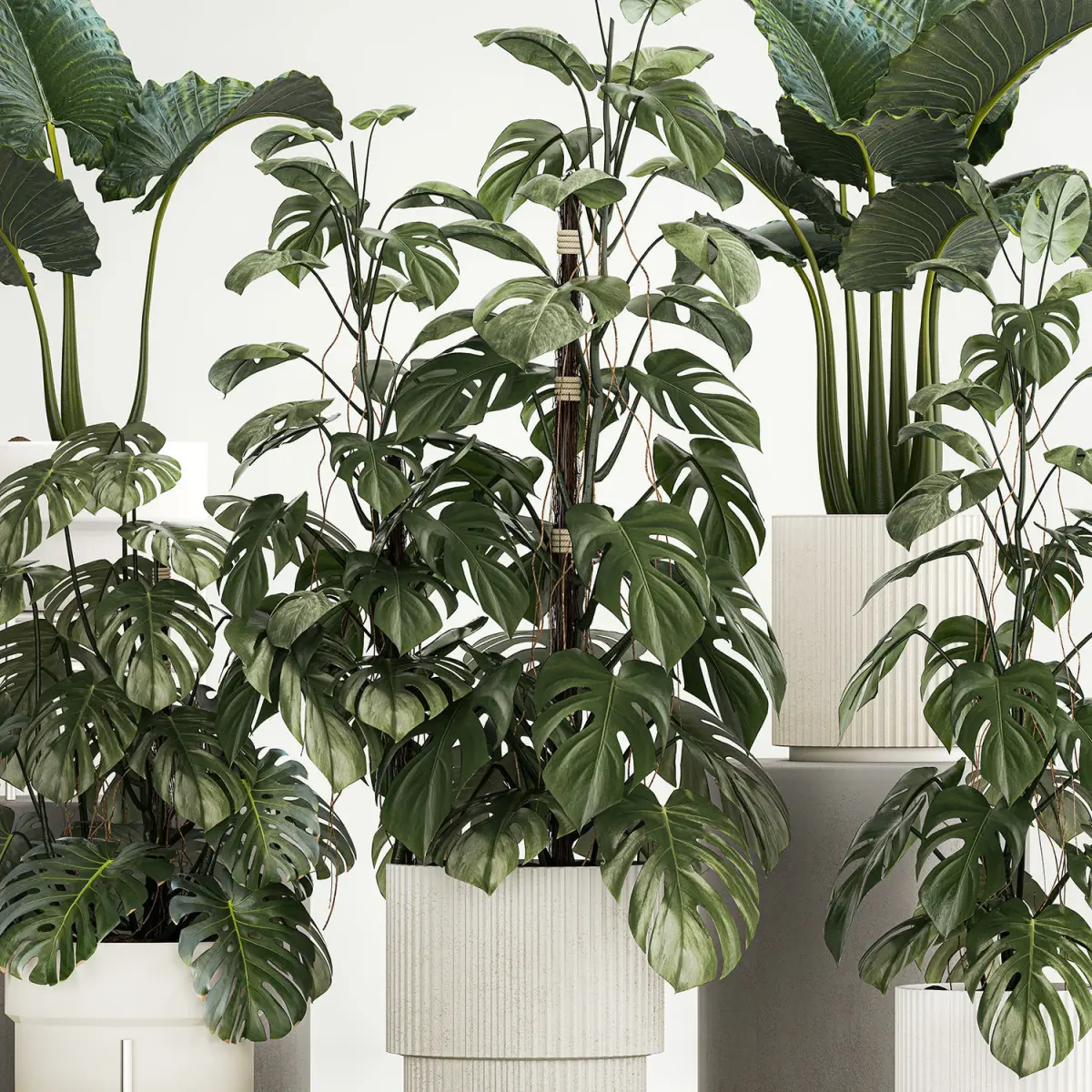 Decorative plants for the street and interior in concrete pots and flowerpots for interior and exterior decor.Houseplantsexotic plantstropical plantsMonstera, Monstereae - MonsteraCollection of ornamental plantsalocasia macrorrhizaAlocasia - Alocasia