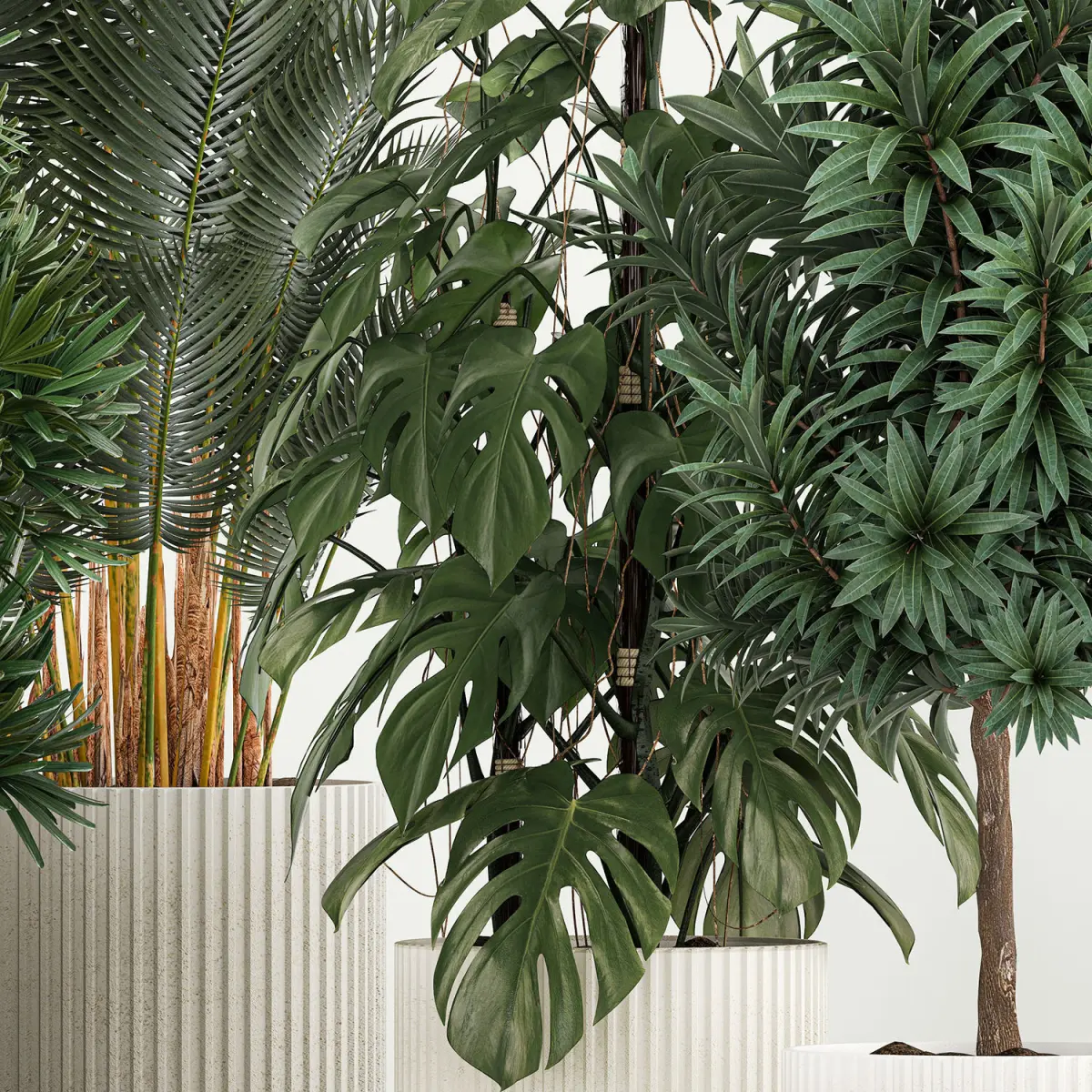 Decorative plants for the street and interior in concrete pots and flowerpots for interior and exterior decor.Houseplantsexotic plantstropical plantsMonstera - MonsteraBamboo Trees - BambooRaphis Palm - Bamboo Raphis PalmRhapis excelsa - Indoor palm RhapisHowea forsteriana - Howea, KentiaDracaena reflexa - Dracaena Reflexa, Dracaena reflexed