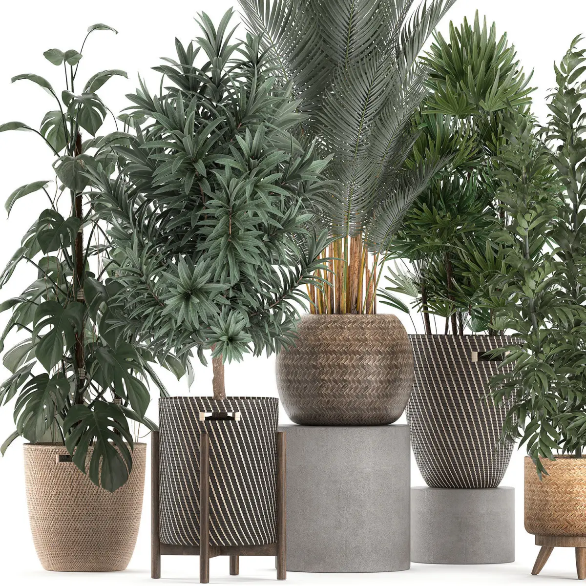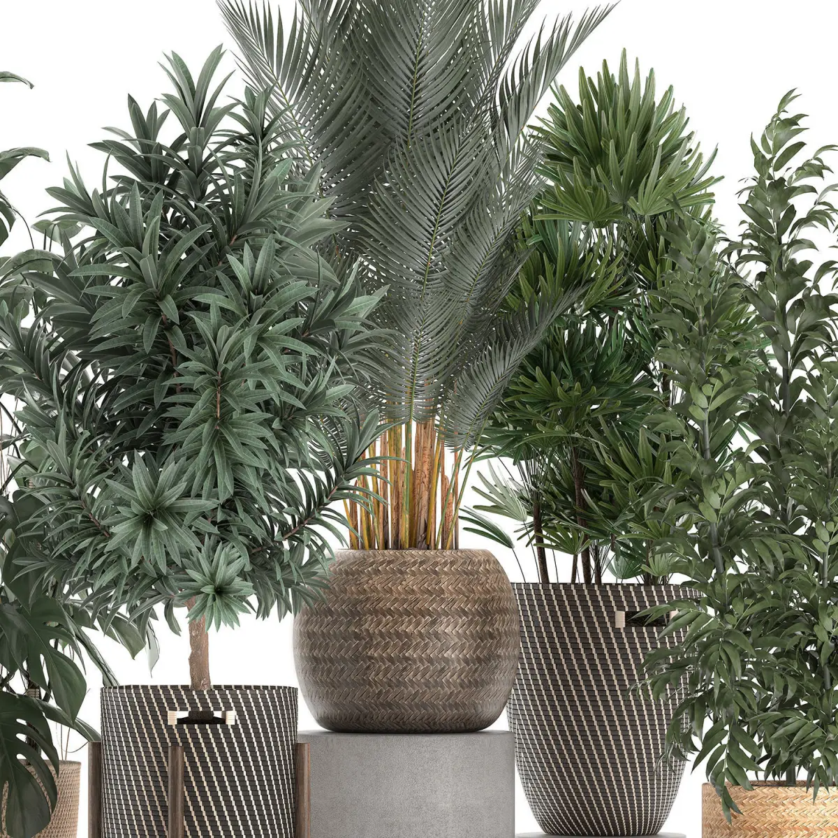 Decorative plants for the interior in baskets, rattan.Houseplantsexotic plants