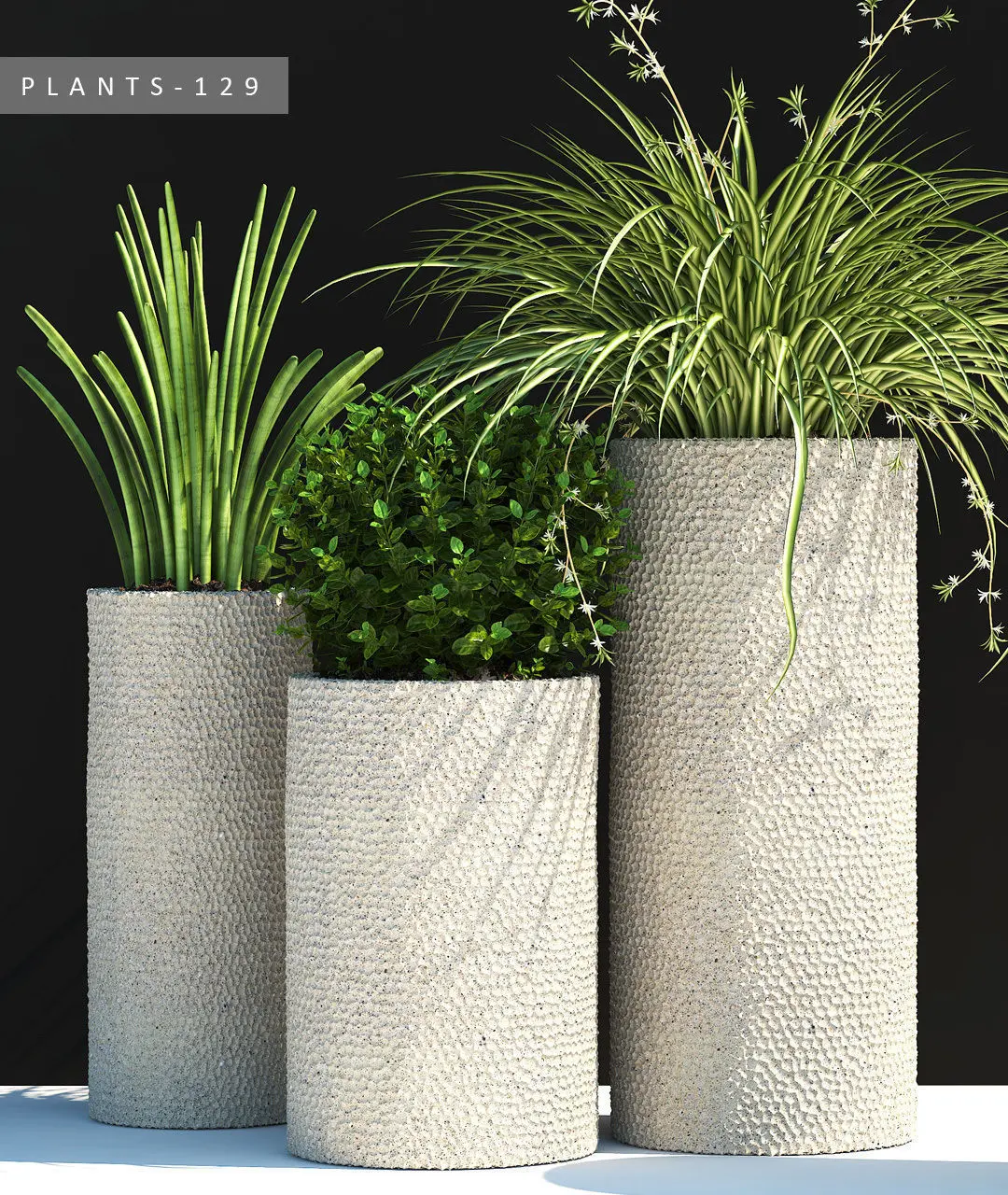 plants 124 is a 3 different show plant in different sizes arranged beautiful in a ceramic pot.. suits best for your interiors are garden area .. designed completely in 3dsmax no plugins are used
