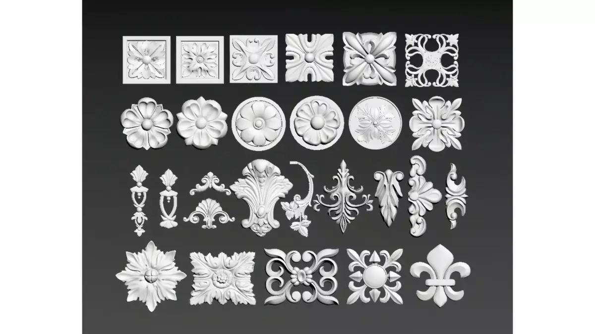 This is a collection of white plaster decorative components, featuring a variety of relief rosettes, carved patterns, and decorative mouldings. Predominantly in a European classical style, they incorporate artistic elements such as Baroque and Rococo.Rich in design: The pieces showcase diverse patterns including square, circular, floral, scroll, acanthus leaf, and fleur-de-lis motifs, with exquisite details and strong three-dimensional relief.Versatile in use: They can be applied in interior decoration for ceiling medallions, wall accents, feature walls, door casings, window surrounds, and more, enhancing the elegance and luxury of the space.Material characteristics: Crafted primarily from plaster, the material has a fine texture and is ideal for creating intricate textures. These are common decorative elements in French, European, and vintage-style interior designs.