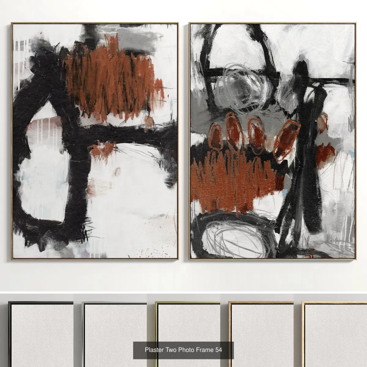 Set of paintings in frames for interior