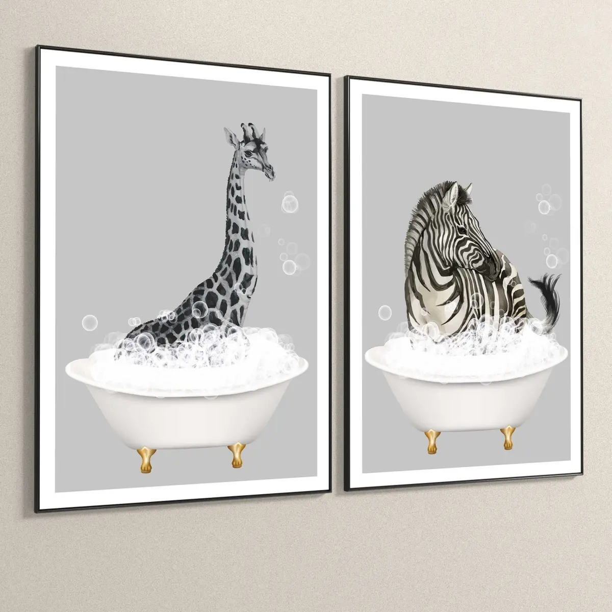 Set of paintings in frames for interior