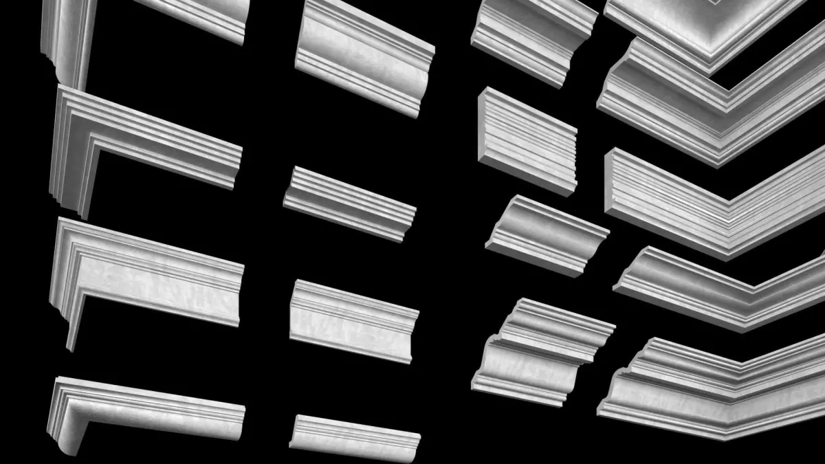 Seamless texture with high detail. You can easily use plasterboards in your spaces.Cornice, plinth, plaster, profile, baguette, frame, wall, ceiling, classic, modern, border.