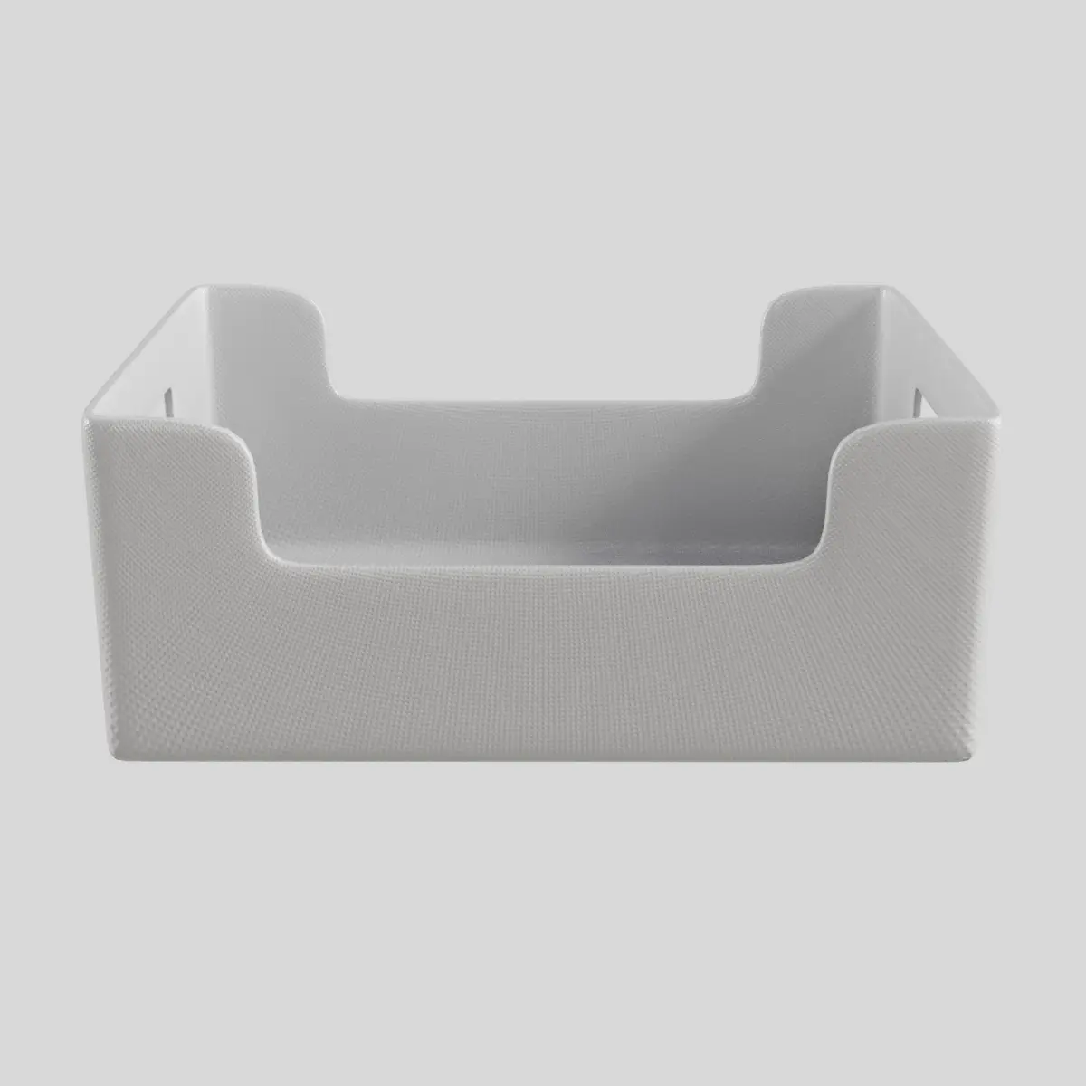 Storage box available in two finishes. The first in clear acrylic and the second in white textured plastic. This model is designed for the Corona renderer in both finishes.Caja de almacenaje disponible en dos acabados. El primero en acrílico transparente y el segundo en plástico texturizado blanco. Este modelo está diseñado para el revoque Corona en ambos acabados.