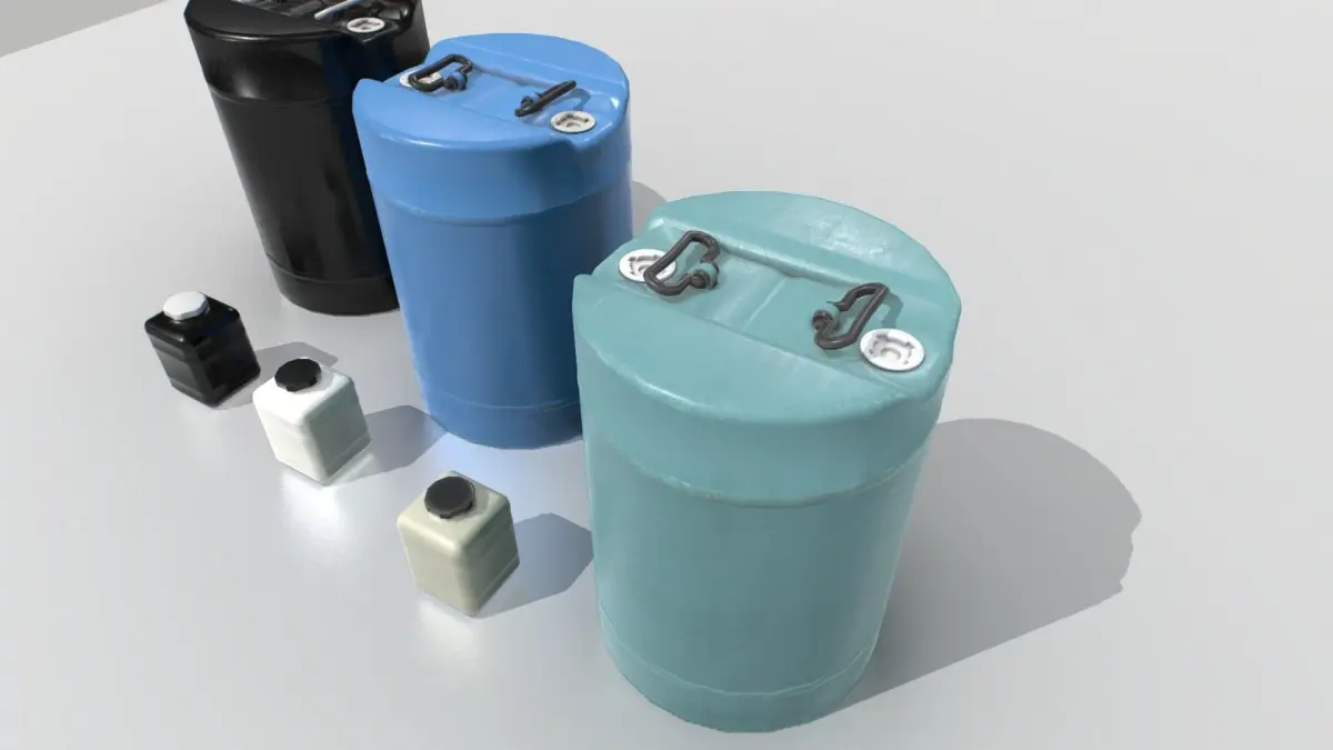 Industrial drums based in real one and with real scale. 1 texture set. 3 color variations for a total of 6 different objects.