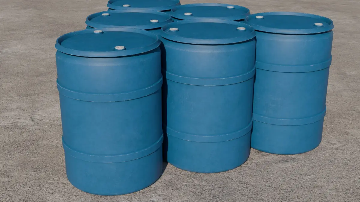 A simple plastic barrel, used to store chemicals, detergents or other liquids.