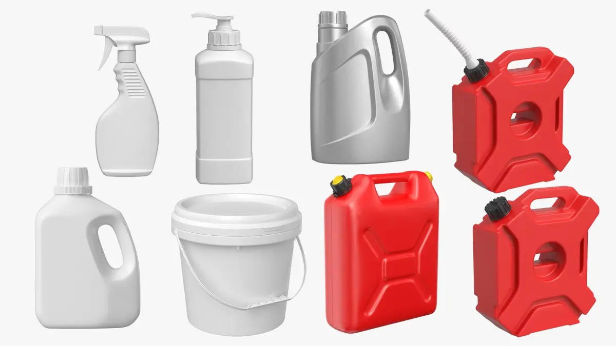 Collection Product: Laundry Detergent Bottle, Plastic Can, Plastic Jerry Can, Motor Oil Bottle, Fuel Canister, Milk Jug v2, Milk Jug v1, Plastic Can v2, Plastic Can v1, Plastic Can Spray, Plastic Bottle Spray, Fuel Can v1, Fuel Can v2, Spray Bottle, Plastic Container v1, Plastic Container v2, Plastic Paint Bucket