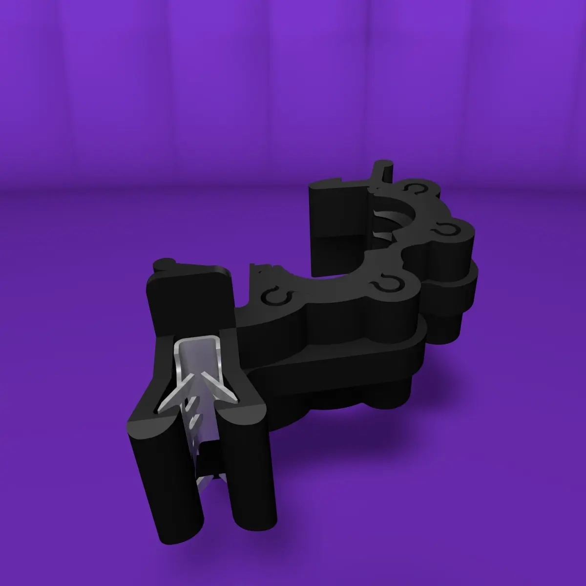 Plastic clamp with clip for wiring. It can be used to prevent a cable to rub against a sharp edge from sheet metal. It's commonly used in the automotive industry.Abrazadera de plástico con clip para el cableado. Se puede usar para evitar que un cable roce contra un borde afilado de la chapa. Se usa comúnmente en la industria automotriz.