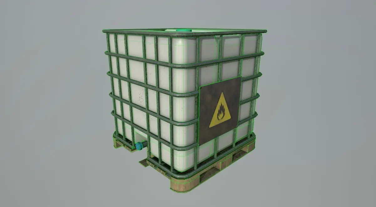 Contenedor de plastico modelado y texturizado en PBR. 2048x2048 pixel textures. Modelo 3d optimizado para motores de juego