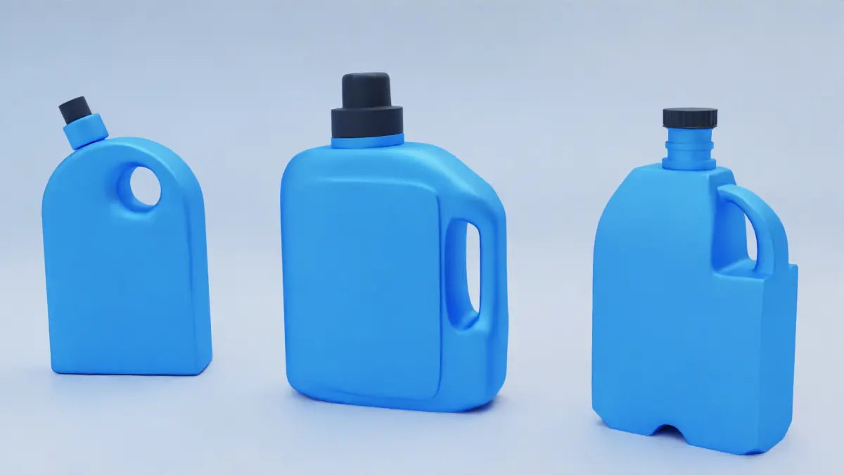 Plastic Detergent Bottle Set Clean Product Packaging This is a high-quality 3D model of a plastic detergent bottle set, ideal for product packaging visualization, branding design, and advertising. The set includes 3 different shapes and sizes, each with ergonomic handles and realistic plastic caps.