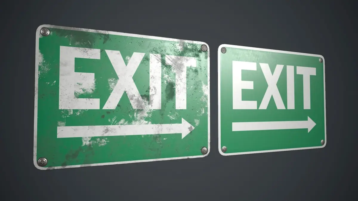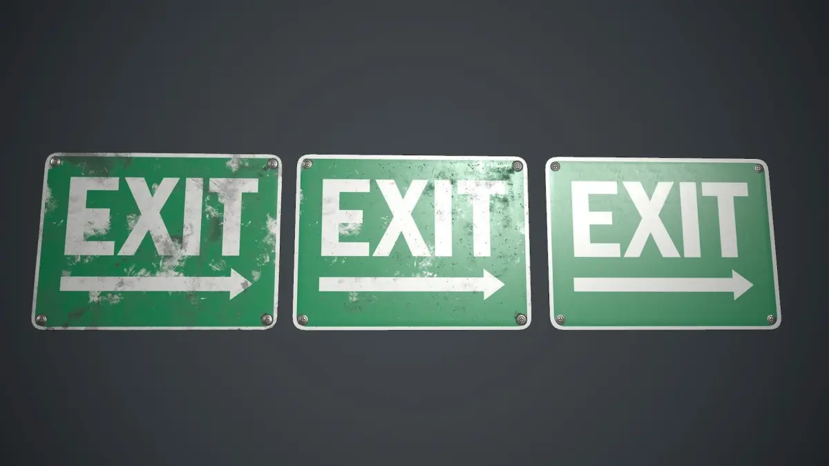 Low poly Plastic Exit Sign with PBR Textures. There are three different sign texture variations.