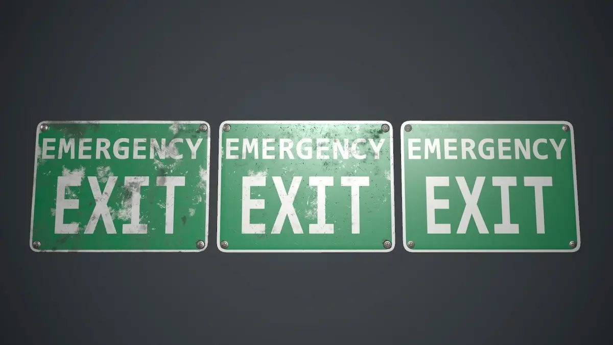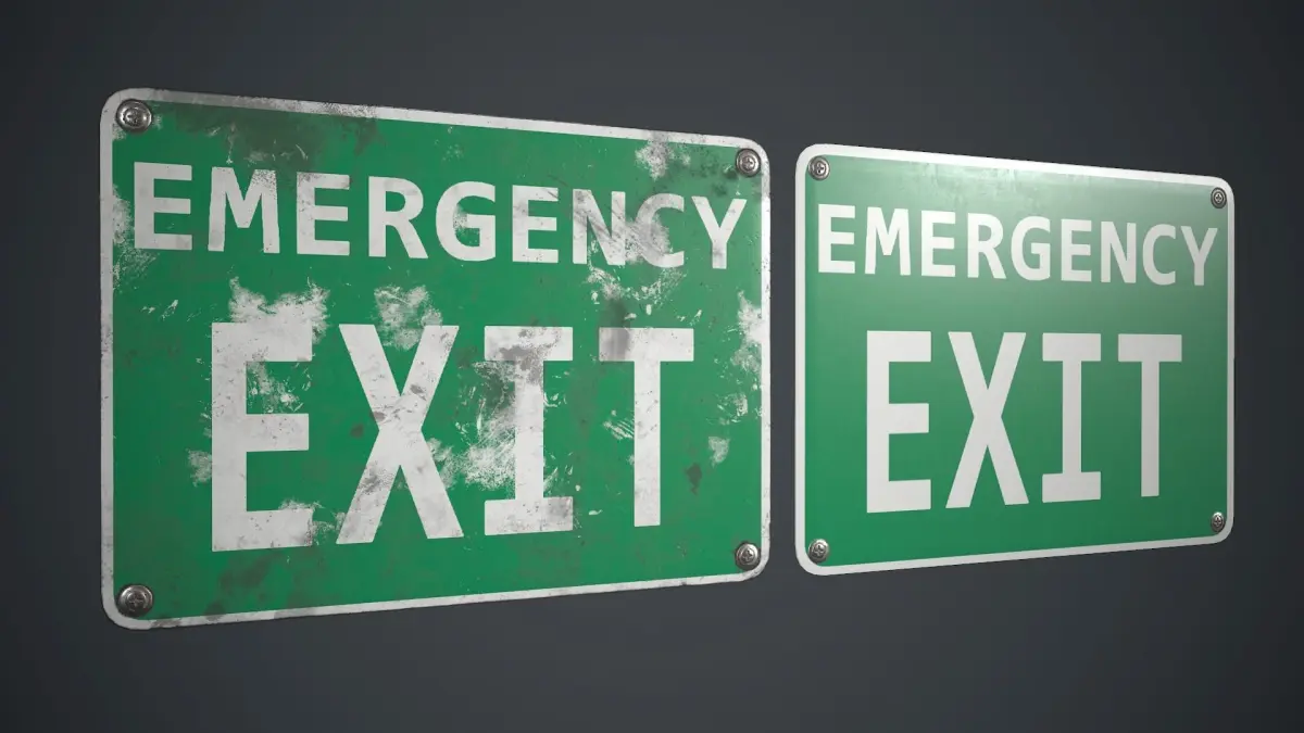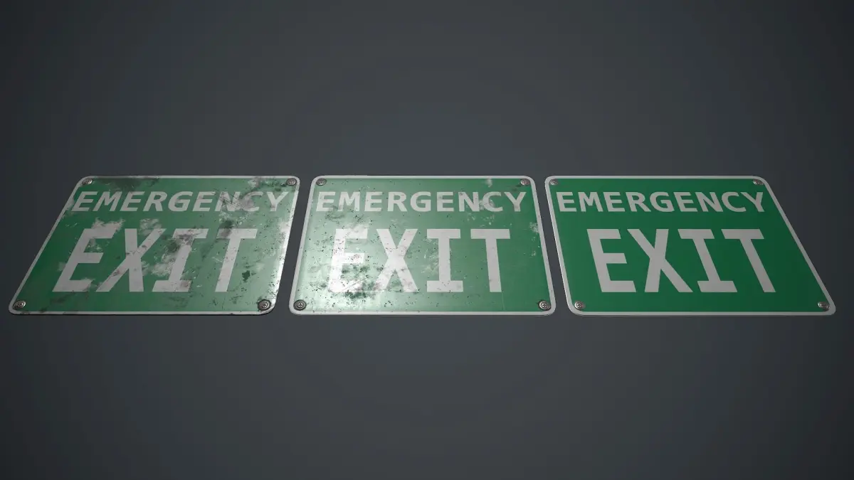 Low poly Plastic Exit Sign with PBR Textures. There are three different sign texture variations.