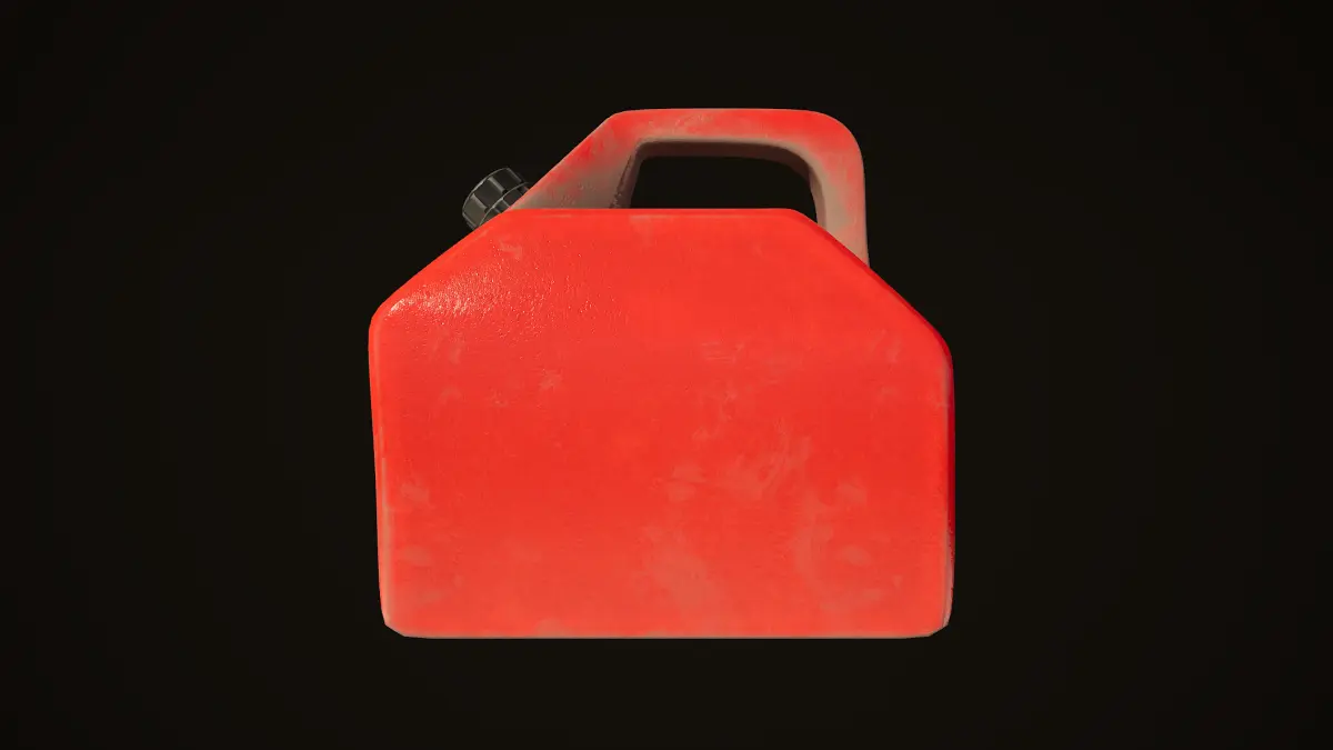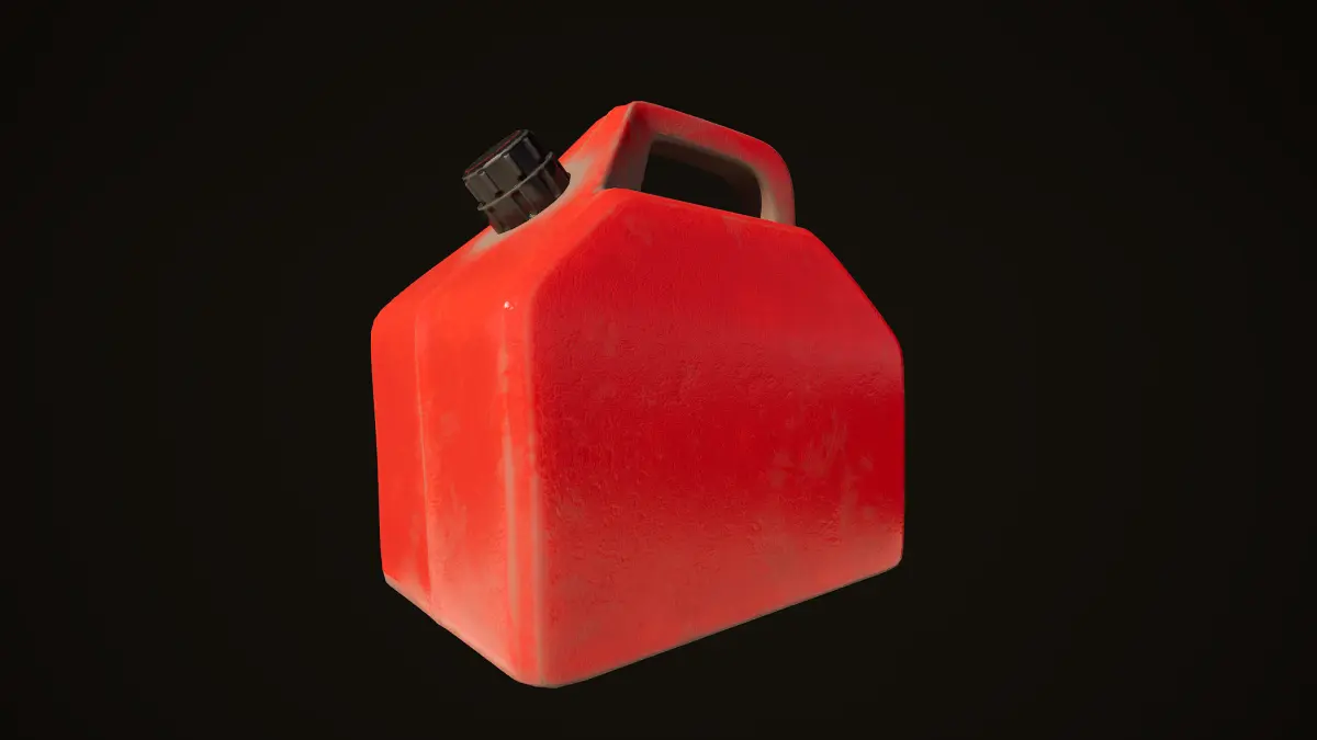 Highpoly model of plastic gas canister red and white colors with textures in resolution 4096x4096px
