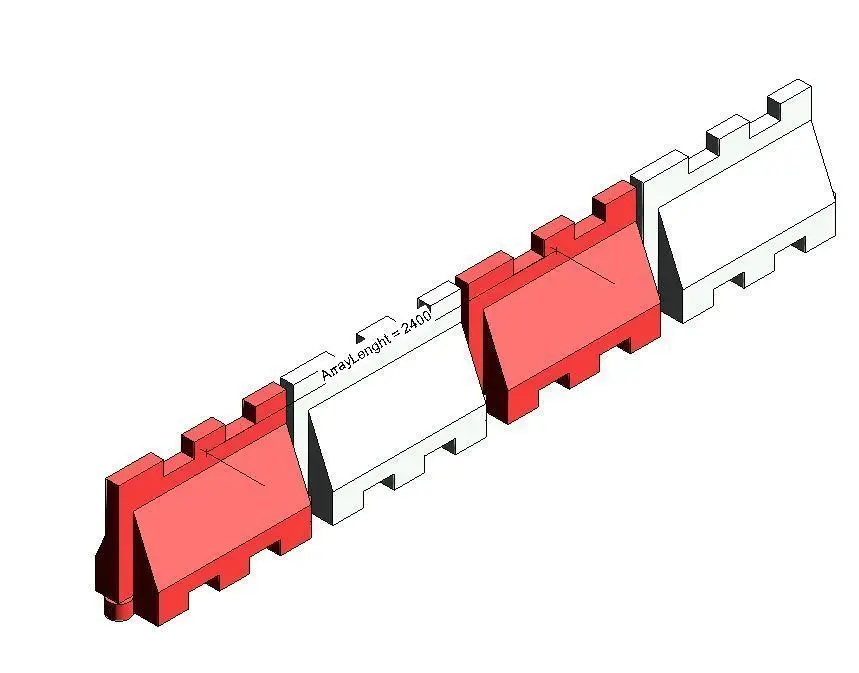 Plastic-Road-Barrier_LOD300 parametric Revit family. For Revit 2018 and above. Available file formats: RFA, RVT, DWG, FBX,DAE.