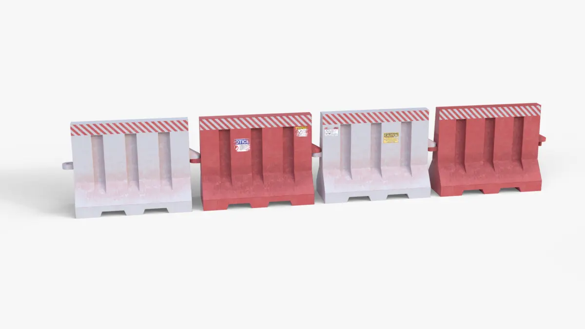 Realistic high quality low-poly 3D model of a Plastic Road Barrier.