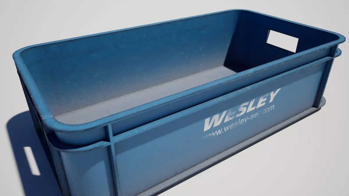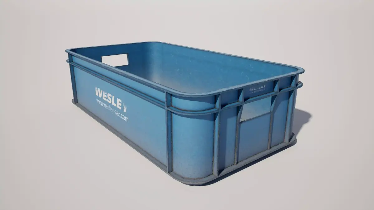 Detailed models of a plastic storage container crate