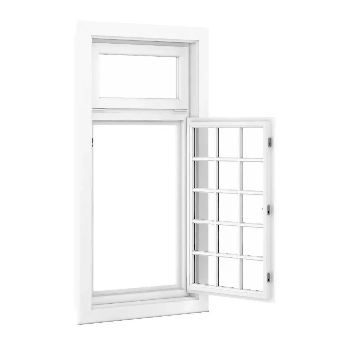 3D model of openable plastic window. Dimensions: 1080mm x 2020mm.