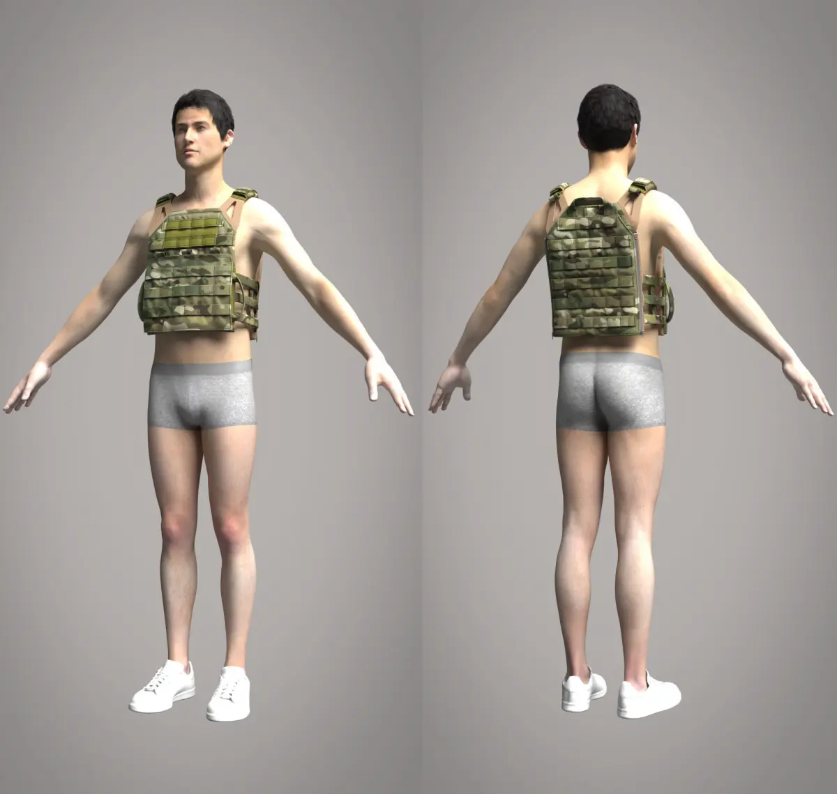 - Clothes in A-pose (top stitching, particle distance-5, CLO3D texture) (.Zprj, obj)