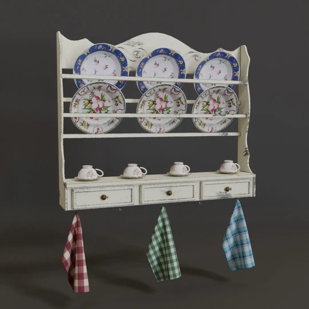 Vintage Plate Rack Shaggy Chic PBR 3d Model