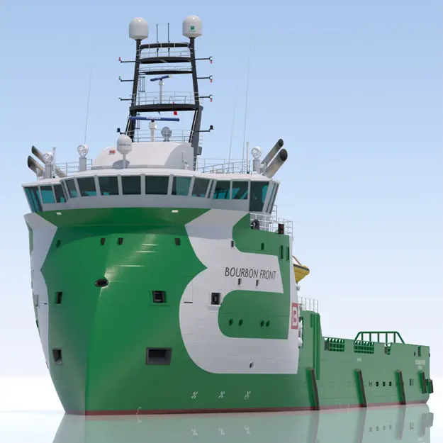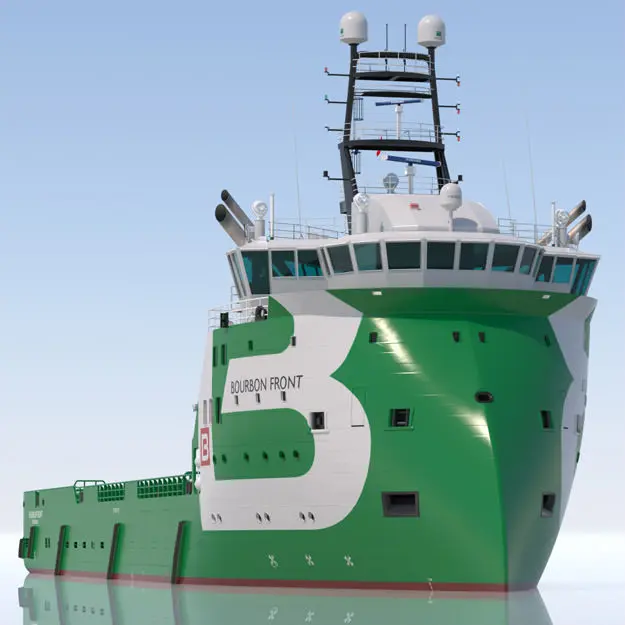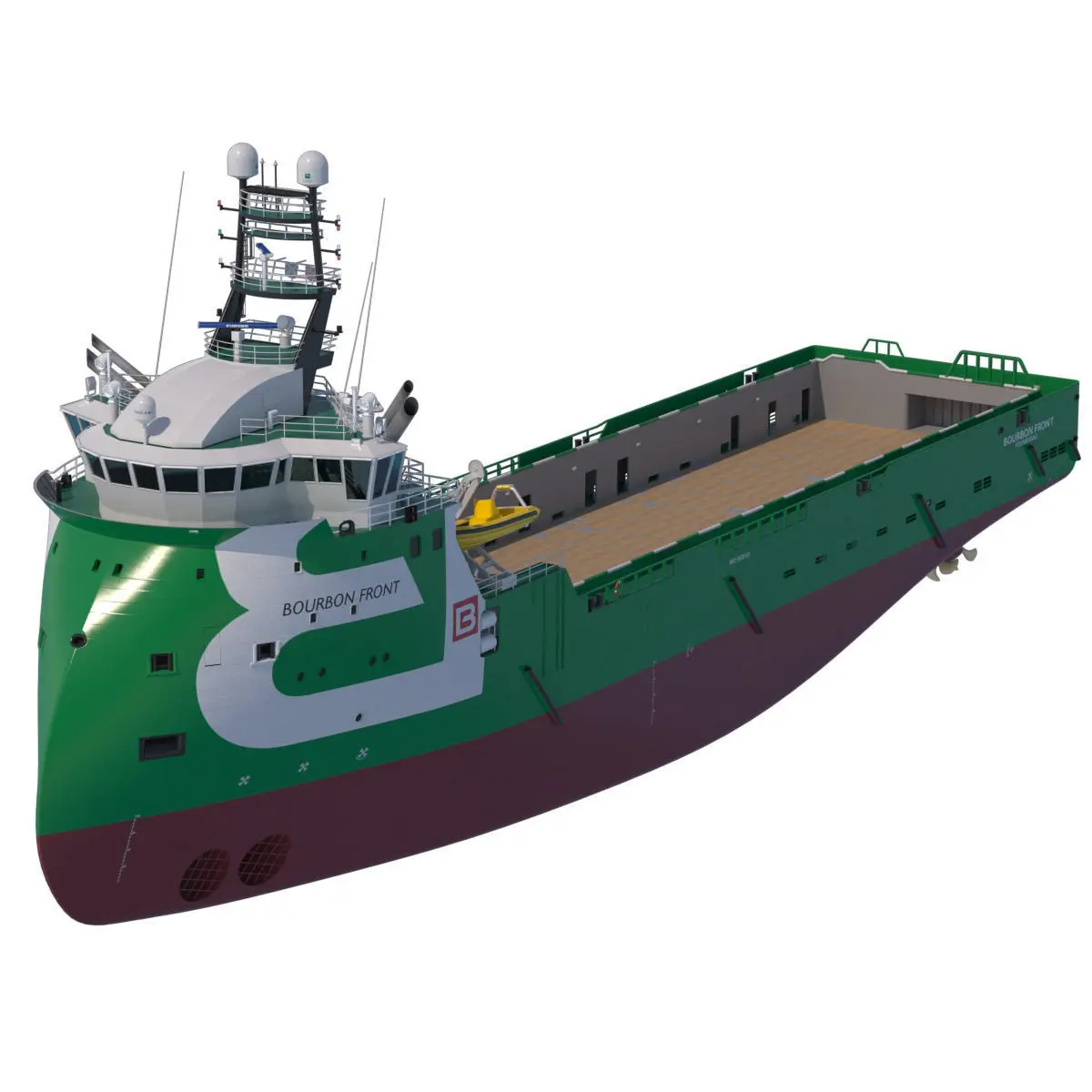 Platform Supply Vessel ULSTEIN PX105 BOURBON FRONT 3D model3D high resolution and fully detailed model of the Platform Supply Vessel BOURBON FRONT.The BOURBON FRONT is a large platform supply vessel arranged for oil recovery operations.Length overall 88.80 mBreadth 19.00 mDeadweight 4,250 mt