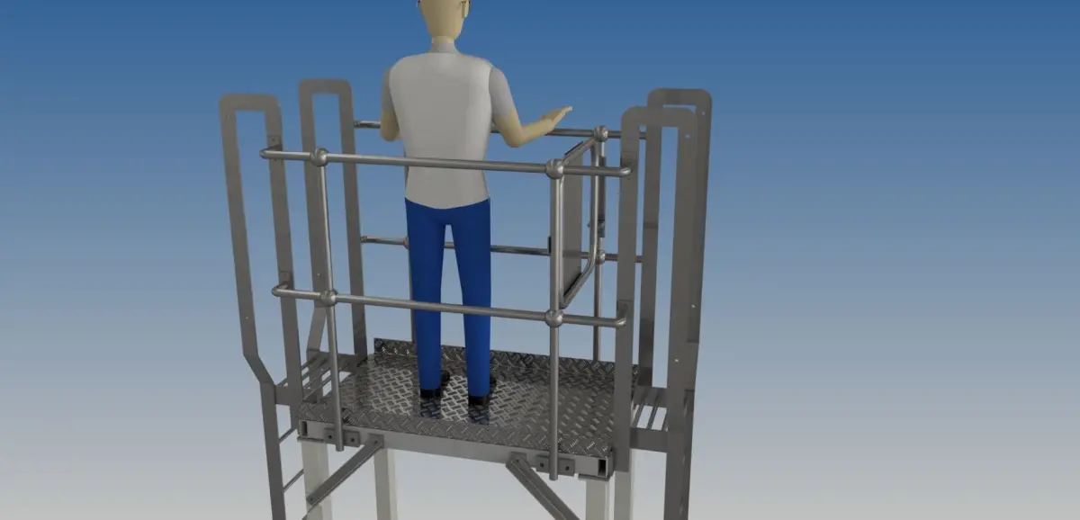 The width of the walkway is 750mm, with 75mm kick plates.