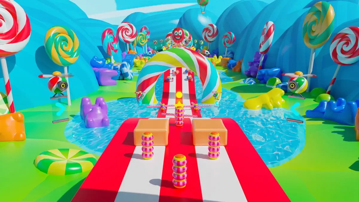 - Obstacles (x12): Rotating lollipop, gummi bear punch, sweet hammers, candy carousel, moving platform, etc.