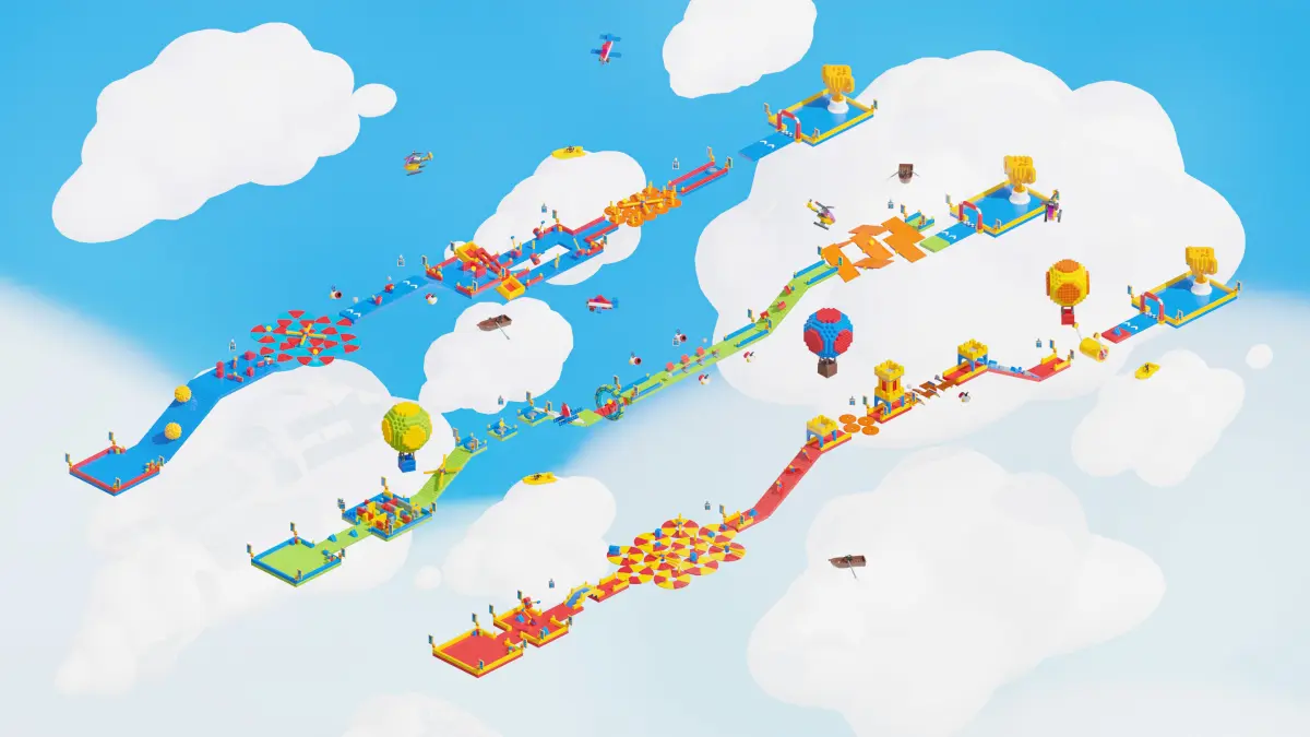 - Obstacles (x29): Cannon, rotating circles, hammer, trampoline, rotating pipes, rotating barrel, moving platforms, etc.