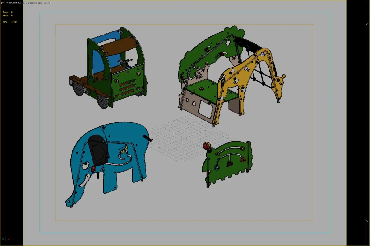 A set of vibrant, animal-themed playground structures designed for imaginative and interactive play. Perfect for engaging kids in fun and creative activities.