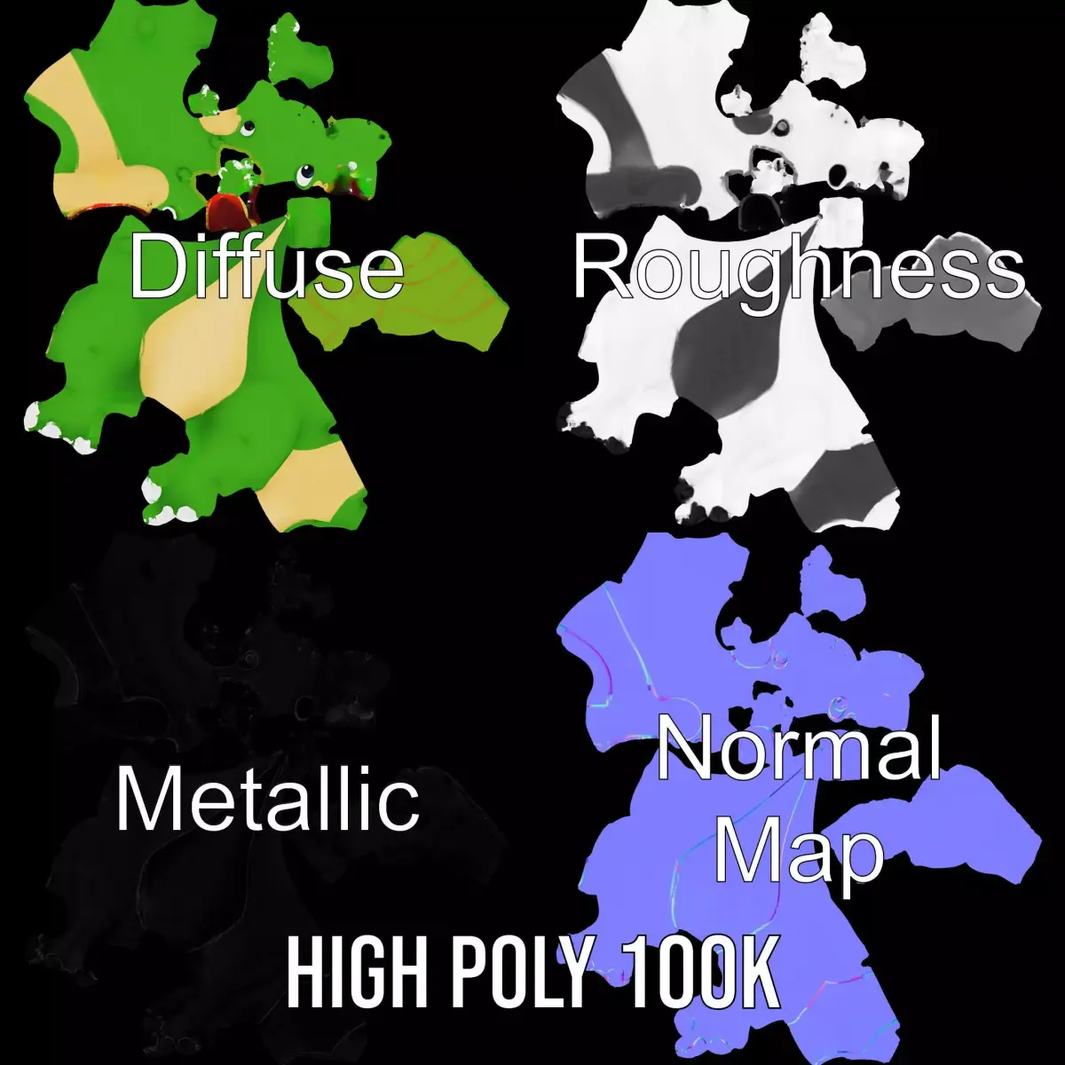 This playful dinosaur cartoon model is perfect for creating engaging animations and educational projects. Each model has 3 levels of detail: low-poly(1000 triangles for mobile), middle-poly(10 000 triangles for environment), and high-poly(100 000 triangles), which allows for the use of this model in production rendering(such as 3ds max, Maya, Cinema4d, Blender, Vray/Corona/Cycles and all other), game engines(Unity and Unreal compatible), and interactive presentations, providing a choice of detail based on the LOD System principle. Ideal for children's games, educational apps, and animated films. The model's textures are PBR, Diffuse, NormalMap, and reflection/roughness/metallic, which are suitable for any modern rendering engine. All models accurately unwrapped and have no overlapping UV. All textures are 4096*4096 in size. Please like and leave a comment for the model if you enjoyed it.