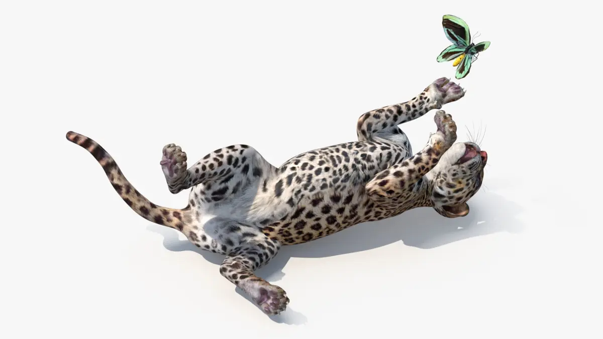 Playful Leopard Cub with Butterfly is a high quality, photo real 3d model that will enhance detail and realism to any of your rendering projects. The model has a fully textured, detailed design that allows for close-up renders, and was originally modeled in 3ds Max 2020 and rendered with V-Ray. Renders have no postprocessing!