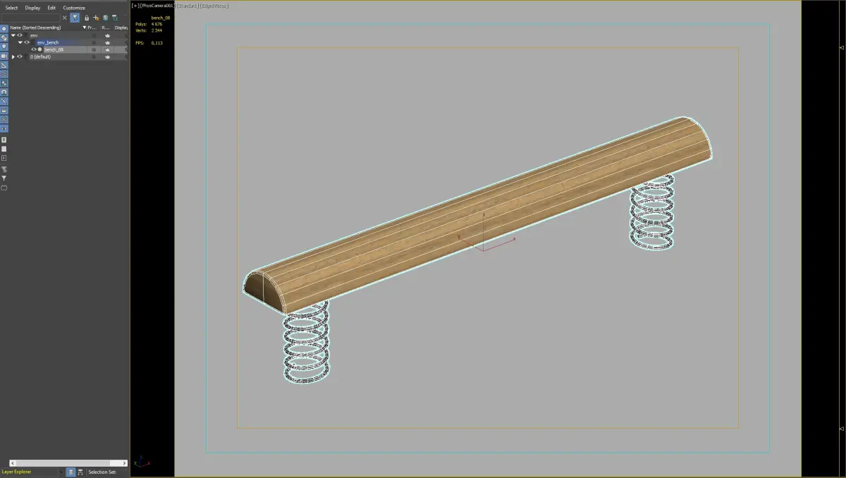 Unique bench with spring supports, adding a playful element to parks and public spaces. Designed for durability and modern aesthetics, perfect for interactive environments.