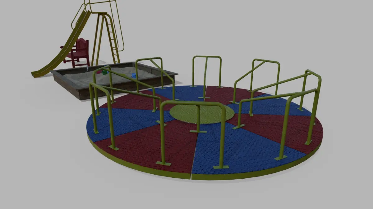 -Slide.-Bench.-Carousel.-Sandbox + Toys
