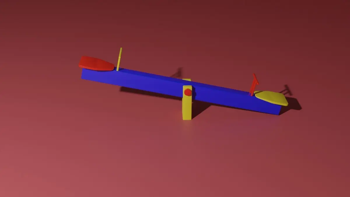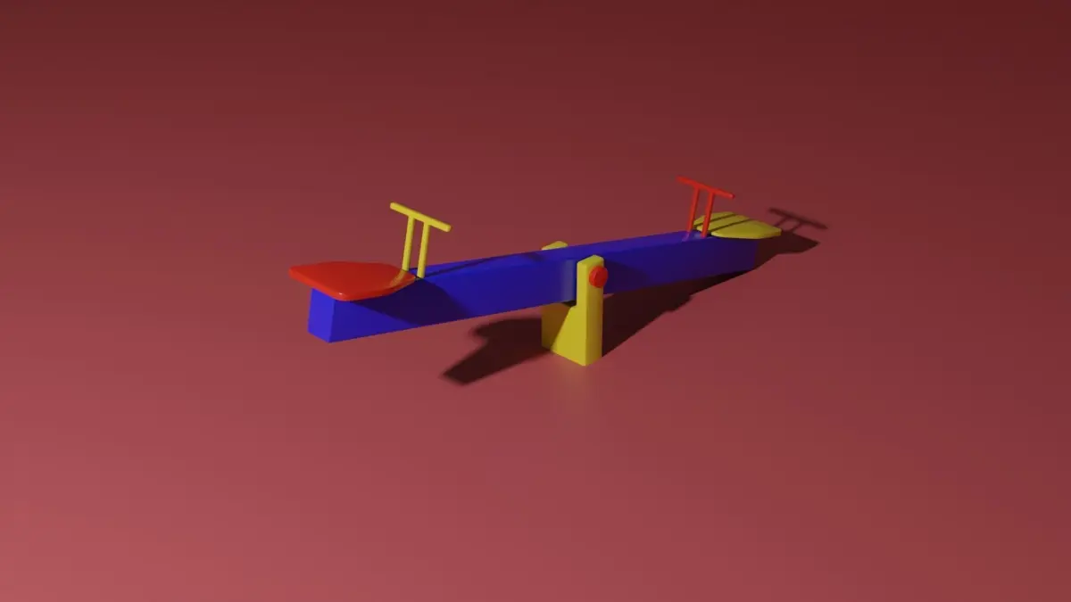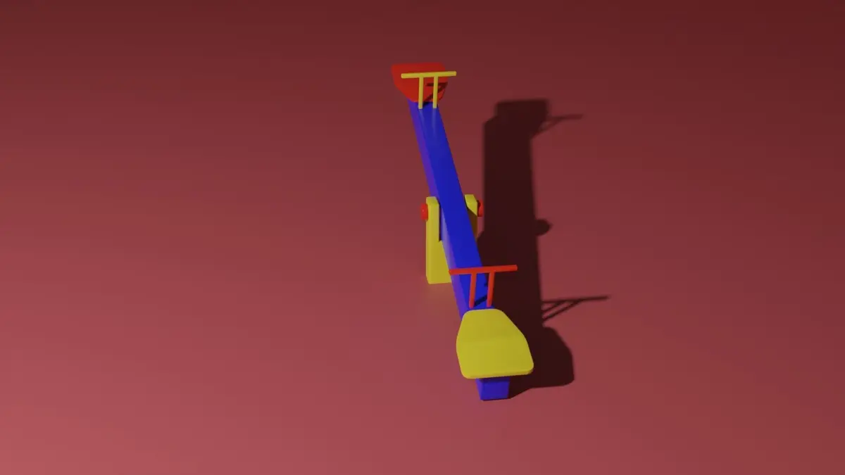 A playground seesaw. It is red, yellow and blue. A childrens toy perfect for any park or playground.The model is made in Blender 3.0 and rendered in Cycles.