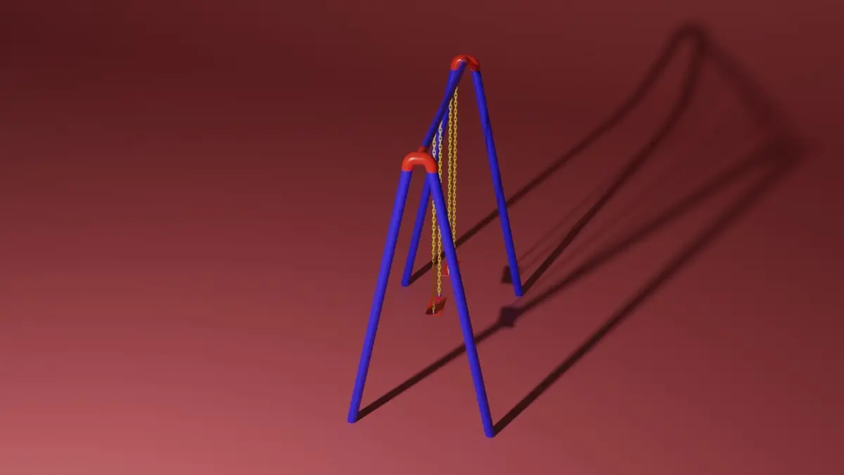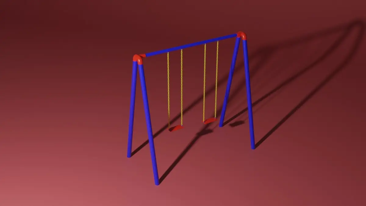 Playground swing. It is made out of painted metal, the colors are blue, red and yellow. It consits of two swings of different heights. A perfect toy for any park or playground.The model is made in Blender 3.0 and rendered in Cycles.
