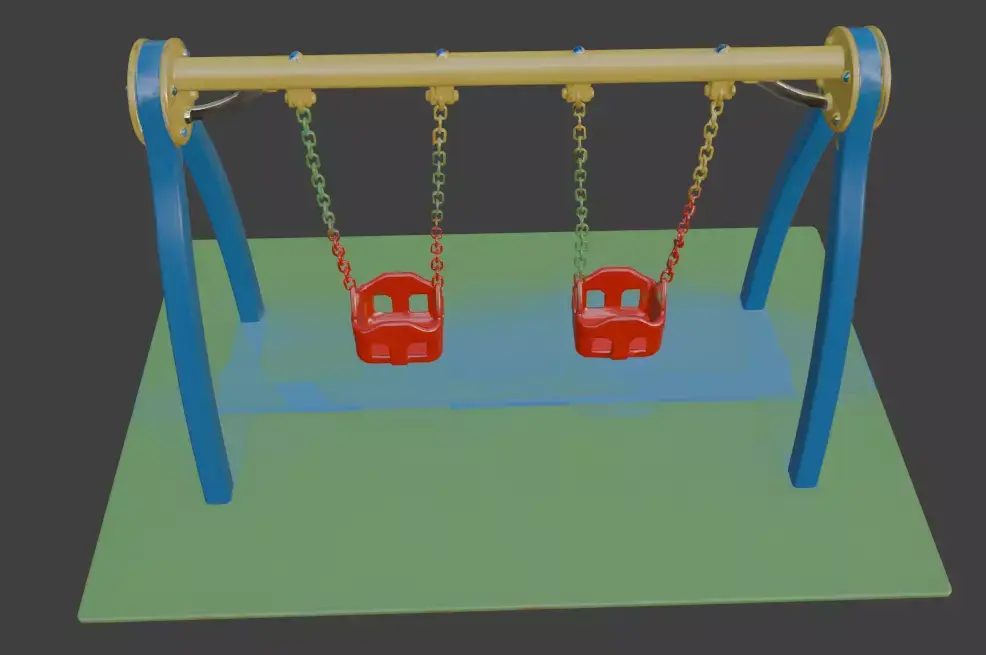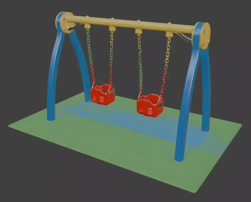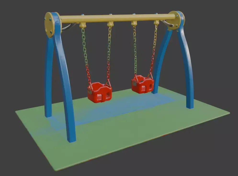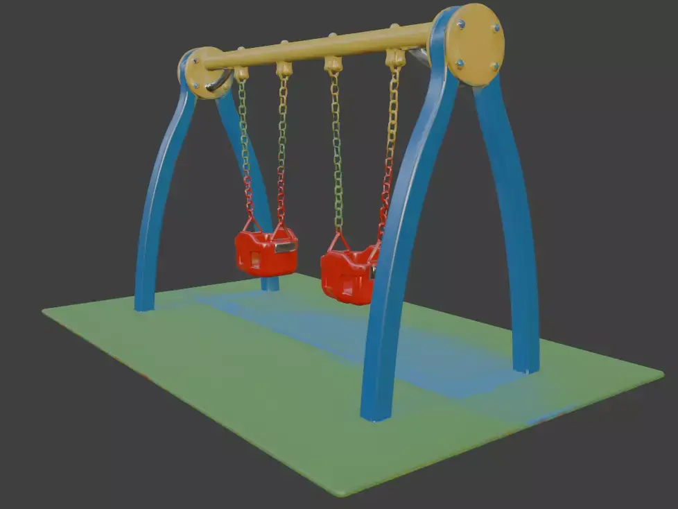 Bring nostalgic playground fun to your 3D scenes with this vibrant, realistic playground swing set. Featuring a sturdy A-frame structure in bright blue and yellow with red accents, this classic outdoor swing includes a toddler-friendly red baby swing, a standard flat seat, and a rugged black tire swing, all suspended by sturdy chains. Perfect for architectural visualization, game environments, children’s playground renders, or outdoor scene projects. High-detail model with accurate proportions, realistic materials, and clean topology, ready to use in any professional 3D software.