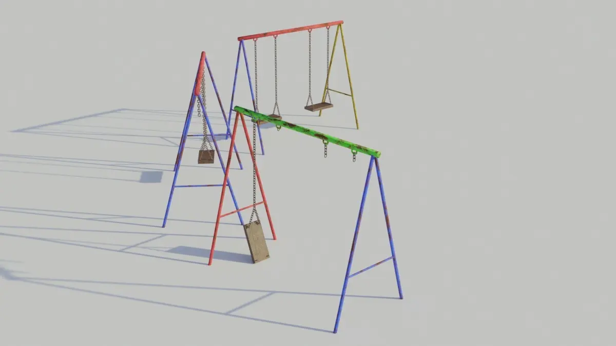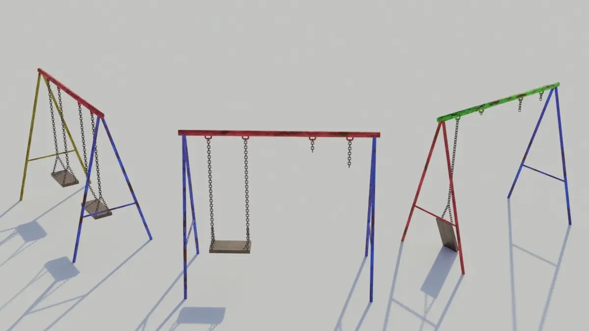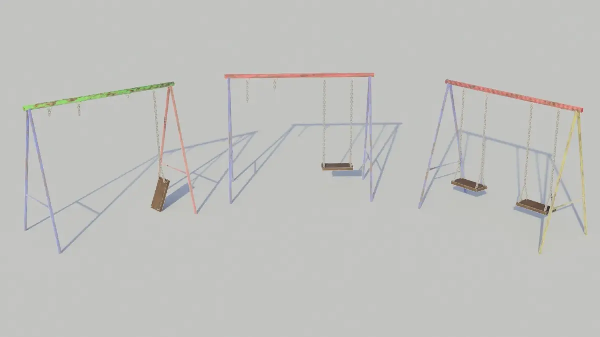 This low poly, PBR 4k textured, vintage playground swing set comes with 3 sets of textures which are interchangable between the model.