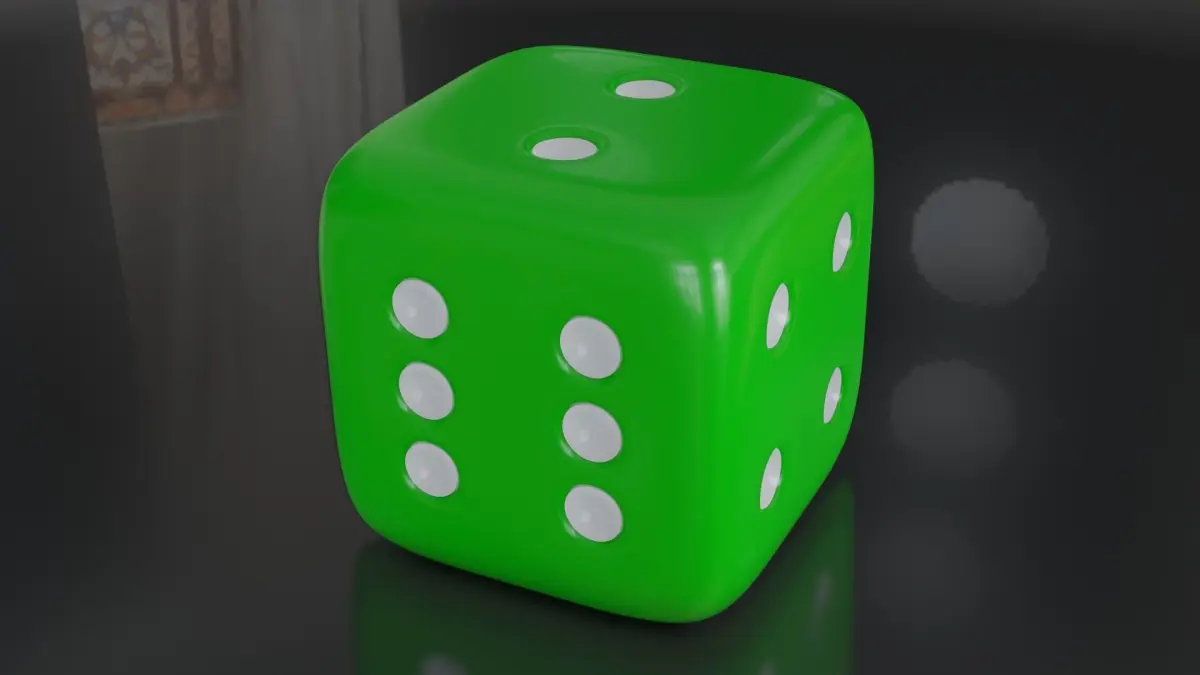 A high poly playing dice modeled and rendered in blender eevee.