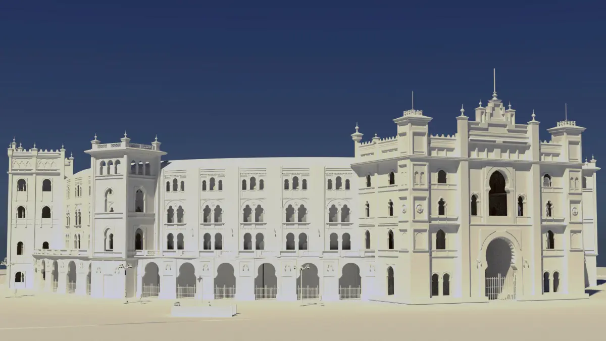 José Espelius is the author of the Las Ventas bullring, designed in neo-Mudejar style and started in 1919. At his death, ten years later, Manuel Muñoz Monasterio would continue the works until its conclusion in 1931.It is in neo-Mudejar style in exposed brick on a metal structure. The decoration was made based on ceramic tiles, works by the ceramist Alfonso Romero Mesa, in which the coats of arms of all the Spanish provinces and other ornamental motifs appear.