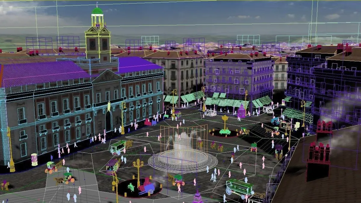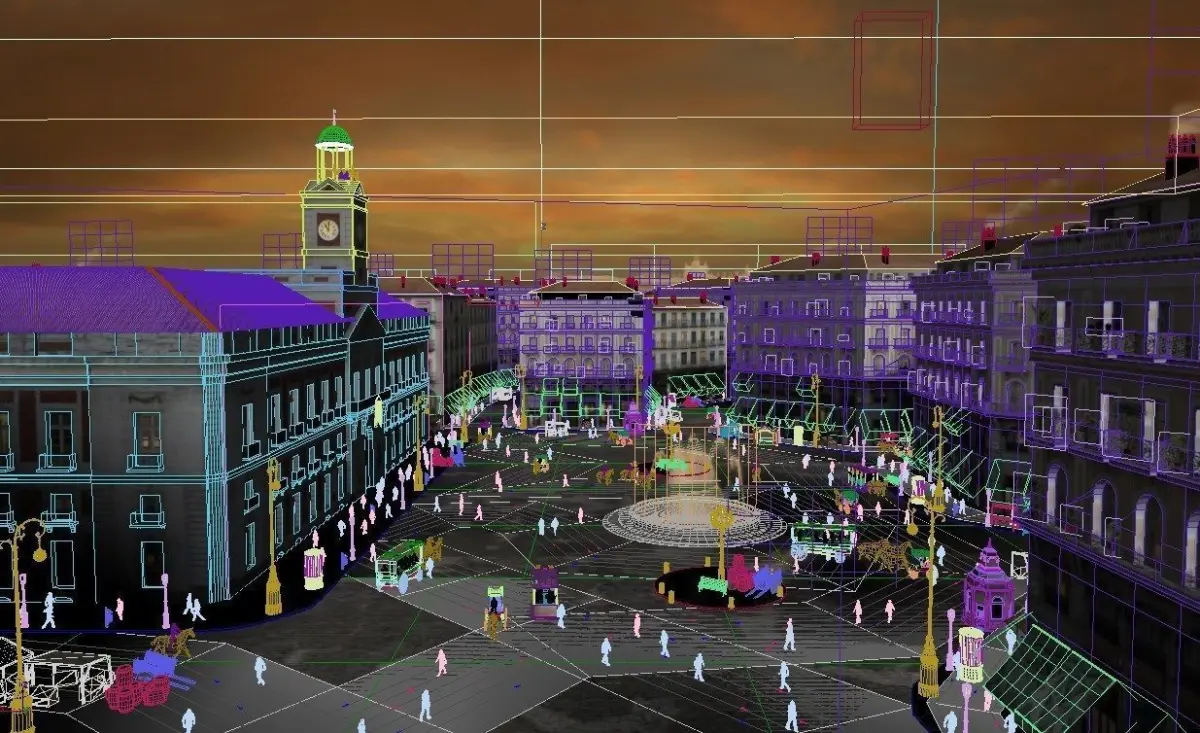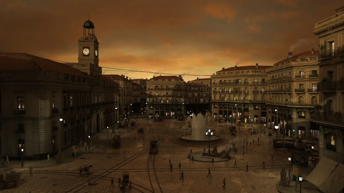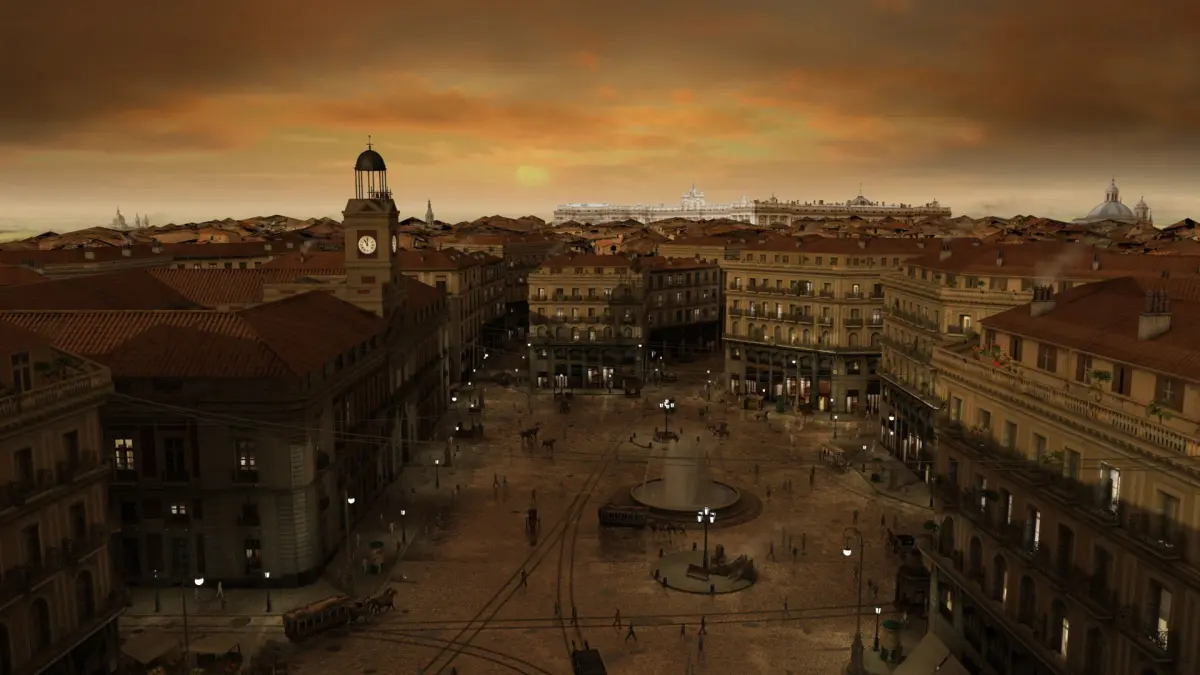 Recreation of the Plaza del Sol in Madrid from the 19th century