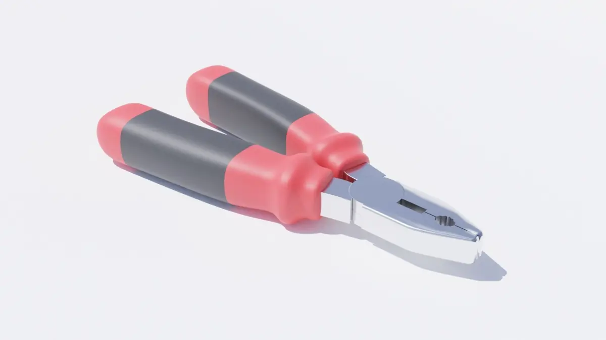 Pliers 3D model that I made using Blender. It is a simple 3D model that has a rubber material for the handle made up of two colours and a head that uses a metallic material. It is like my Needle Nose Pliers 3D model as it uses the same handle as well as a modified version of the head.