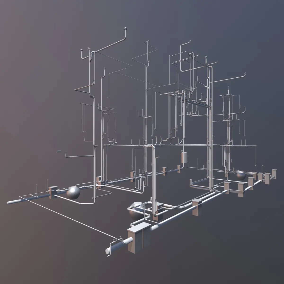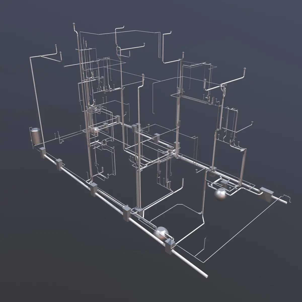 Plumbing piping in building 3D model