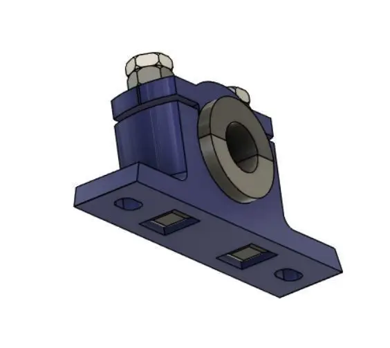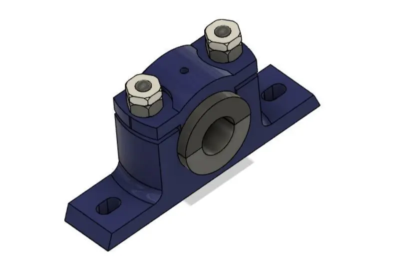 Plummer block:A cradle for a journal bearing, consisting of a lower part on which sits the shaft or axle in its bearing, and a cap fitting over this, which holds the shaft or axle in place and can be tightened by means of bolts as the surface of the bearing wears away; a pillow block.