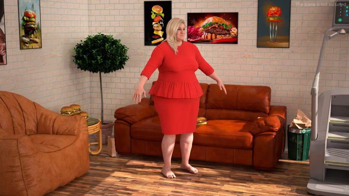 Plus Size Female in Red Dress Rigged is fully rigged and is ready to be animated. You can easily position it the way you need or animate it the way your project requires using helpers in 3D Studio Max. See the turntable to get an idea of how rigging works. The pose of the model on the render images is an example and can be recreated using rig, it is not initially included into the product.