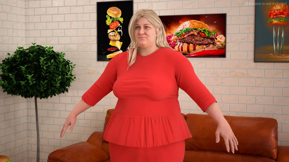 Plus Size Female in Red Dress Rigged is a three-dimensional model of plus-size woman in dress, representing formal wear style, street walking style, or party event style.