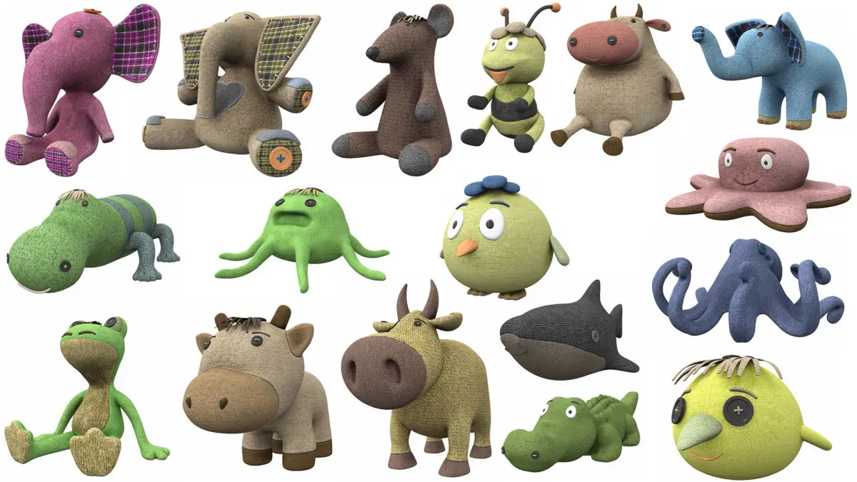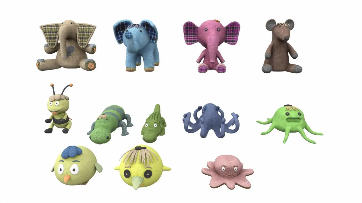 The plush toy collection package consists of 3 basic textures (one material - one set of textures).All models are available separately in the archive.