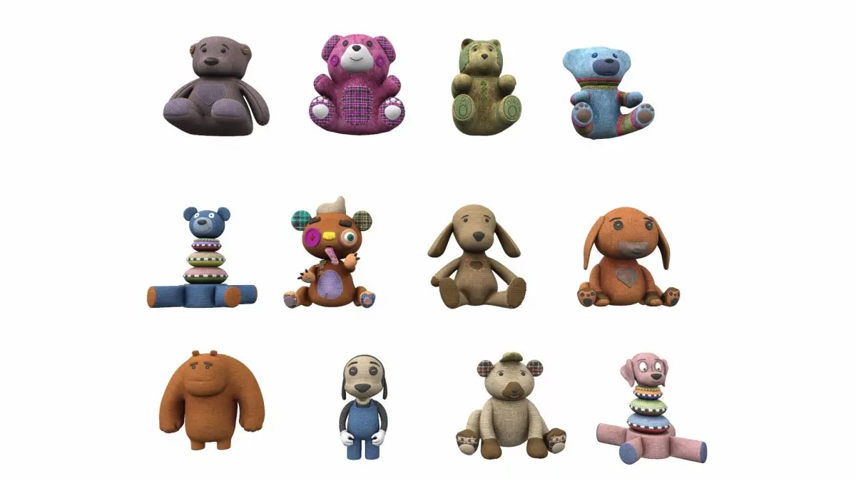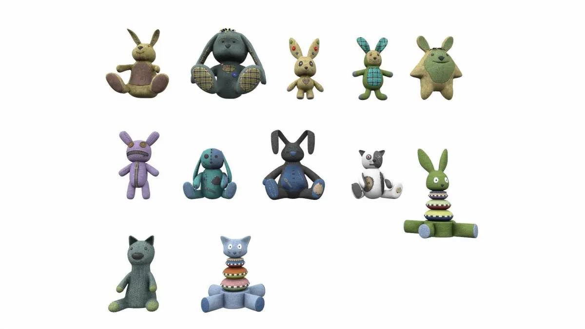 The plush toy collection package consists of 3 basic textures (one material - one set of textures).All models are available separately in the archive.