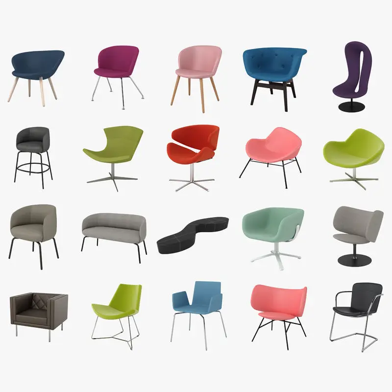 A DETAILED 3D MODEL COLLECTION OF +HALLE CHAIRS: