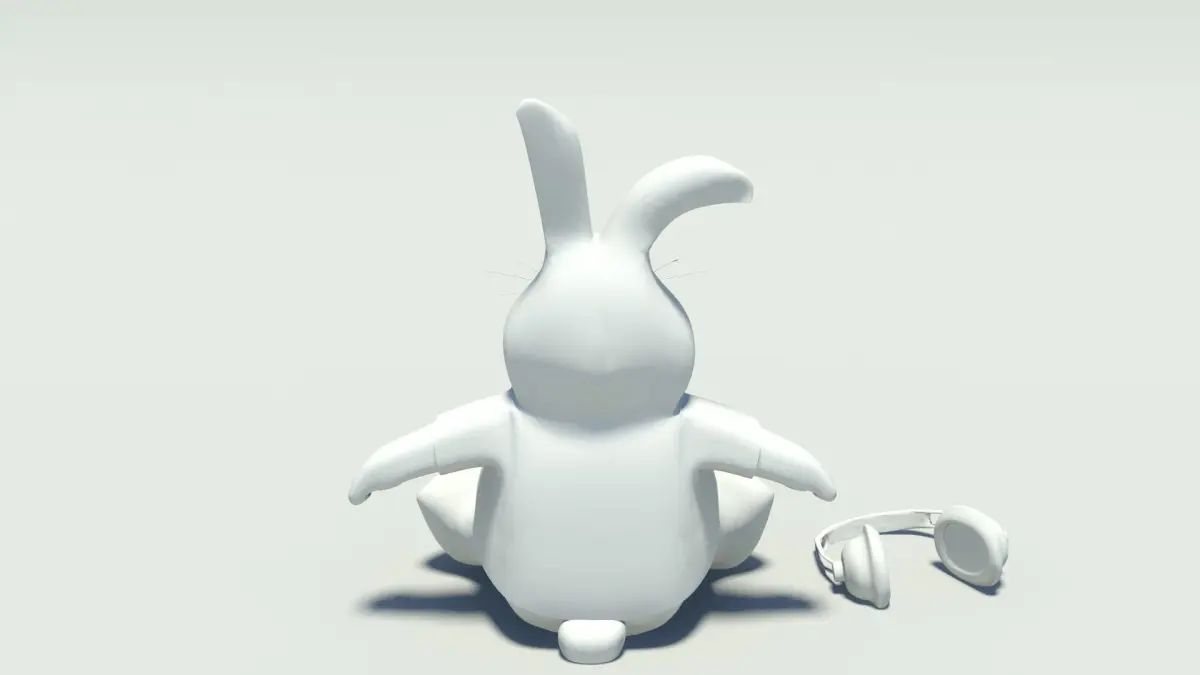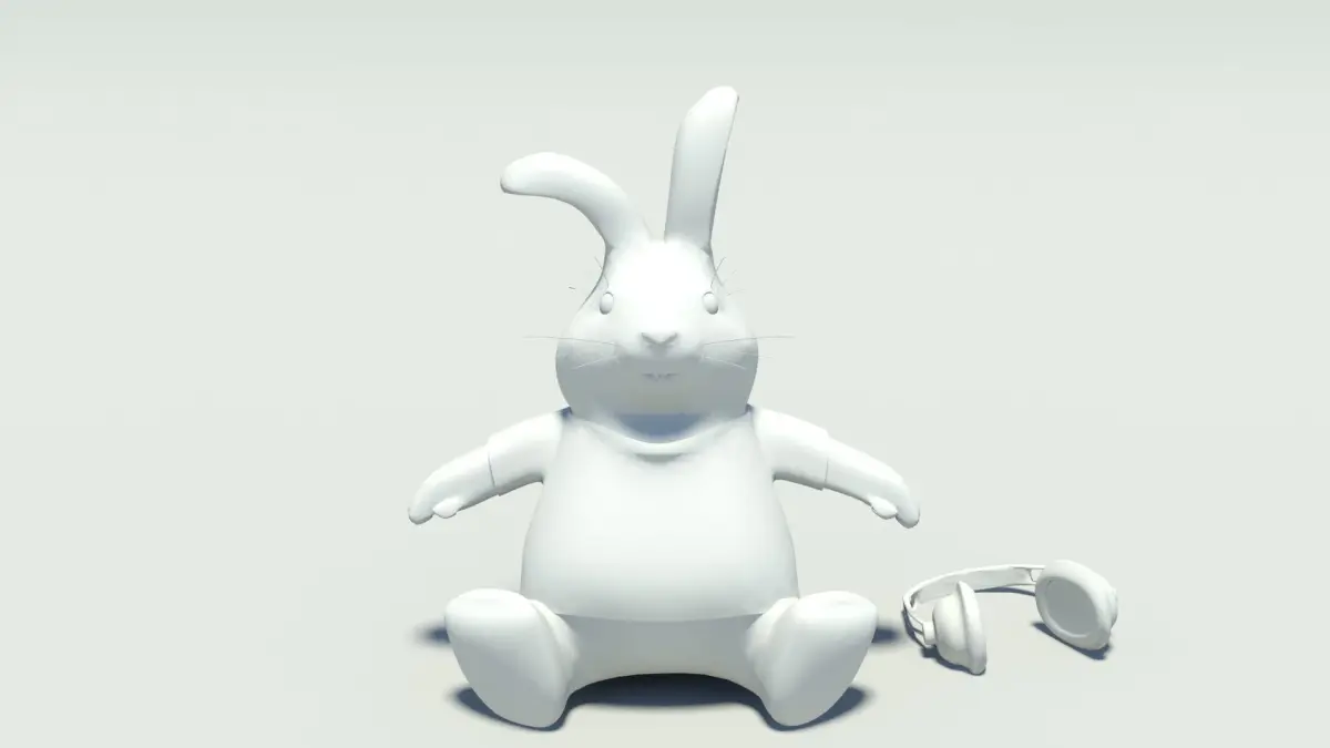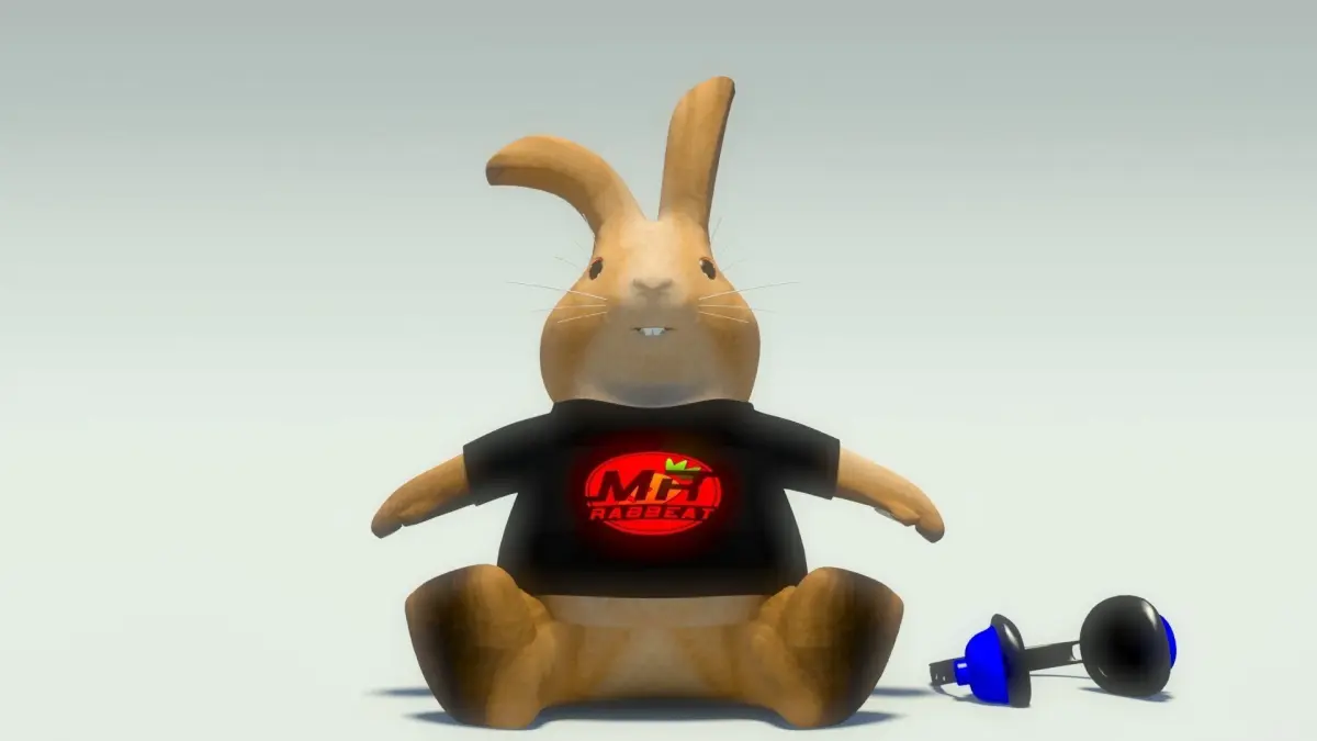 A cool plushie bunny with a serious attitude, wearing a back t-shirt and designed its own logo. Can be used in any type of project, Video, marketing campaing, games of any type, scenes or web pages.