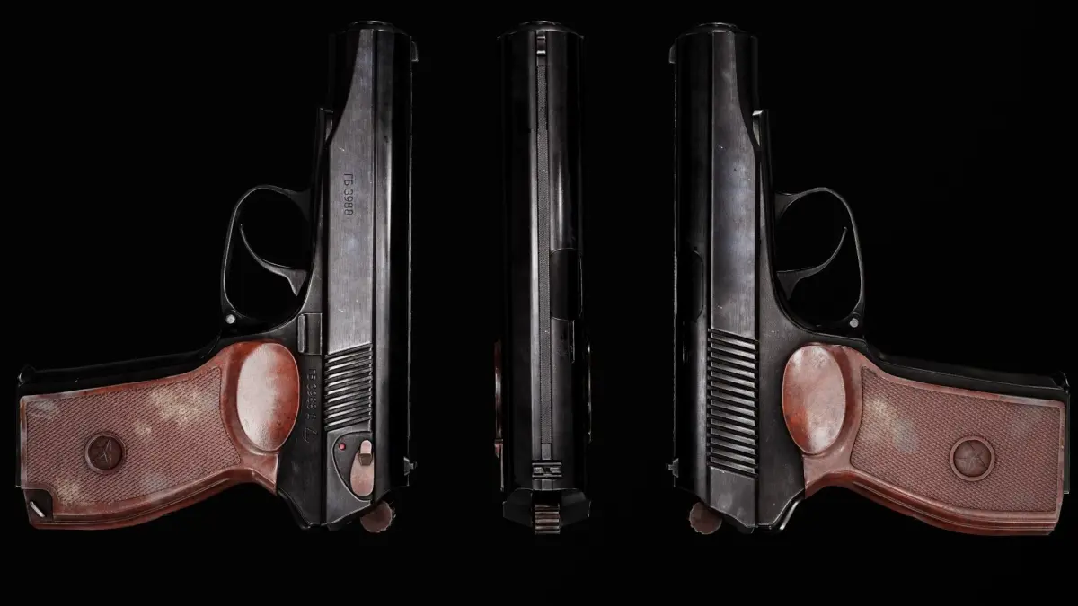 -PM Pistol: 4096x4096 base color, roughness, metalness, normal and AO (ambient occlusion) maps-There is a separate download of the textures in unreal engine packed for those who want.-Textures designed for physically based rendering (PBR)-Textures in .png formatDescription : The Makarov pistol or PM (Russian: Пистолет Макарова, Pistolet Makarova, literally Makarov's Pistol) is a Russian semi-automatic pistol. Under the project leadership of Nikolay Fyodorovich Makarov, it became the Soviet Union's standard military side arm 1951–1991.[1]Produced by a Watergate Developer.